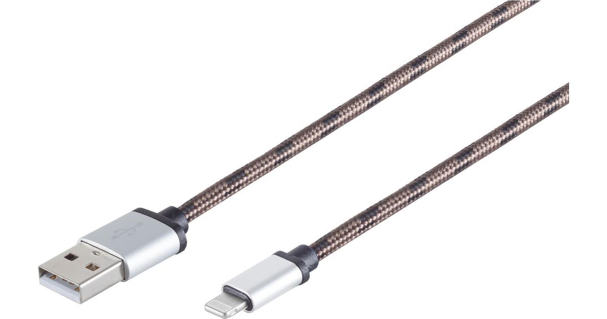 S-Conn 14-50078, 0,9 m, Lightning, USB A, Pruun, Sirge, Sirge