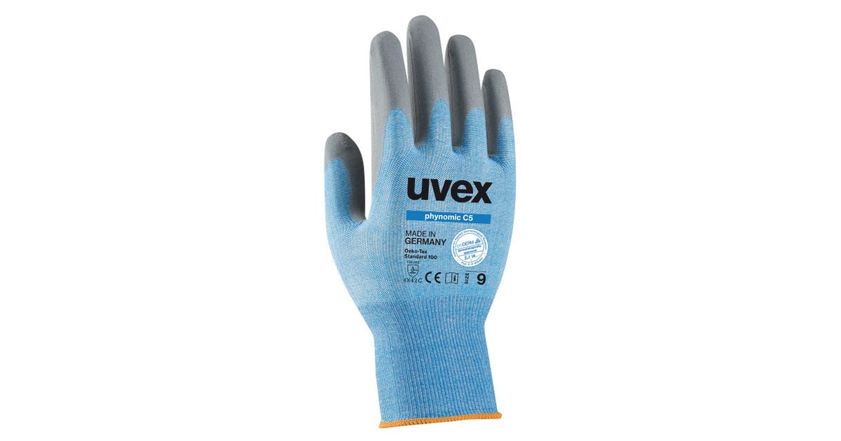 Safety gloves Uvex Phynomic C5, cut level C/5, Dyneema, polyamide, elastame with aqua polymer foam coating. Size 11