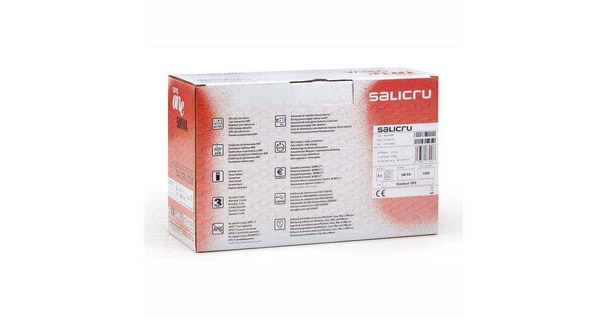 Salicru 662AF000001 puhvertoiteallikas (UPS) Liini-interaktiivne 0,5 kVA 240 W 2 vahelduvvoolu kontakt