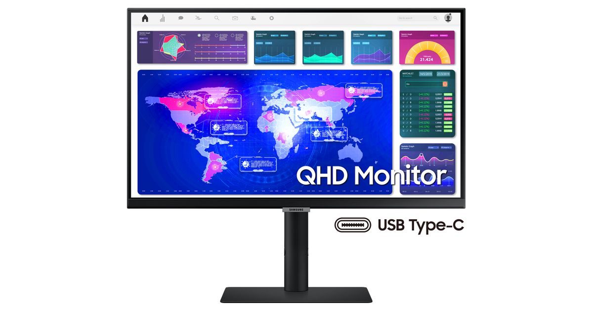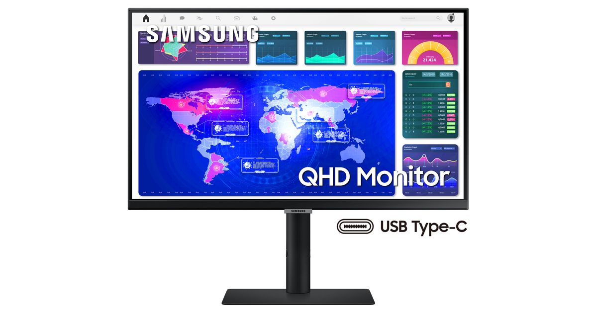 Samsung LS24A60PUC, 61 cm (24"), 2560 x 1440 pikslit, Quad HD, LED, 5 ms, Must