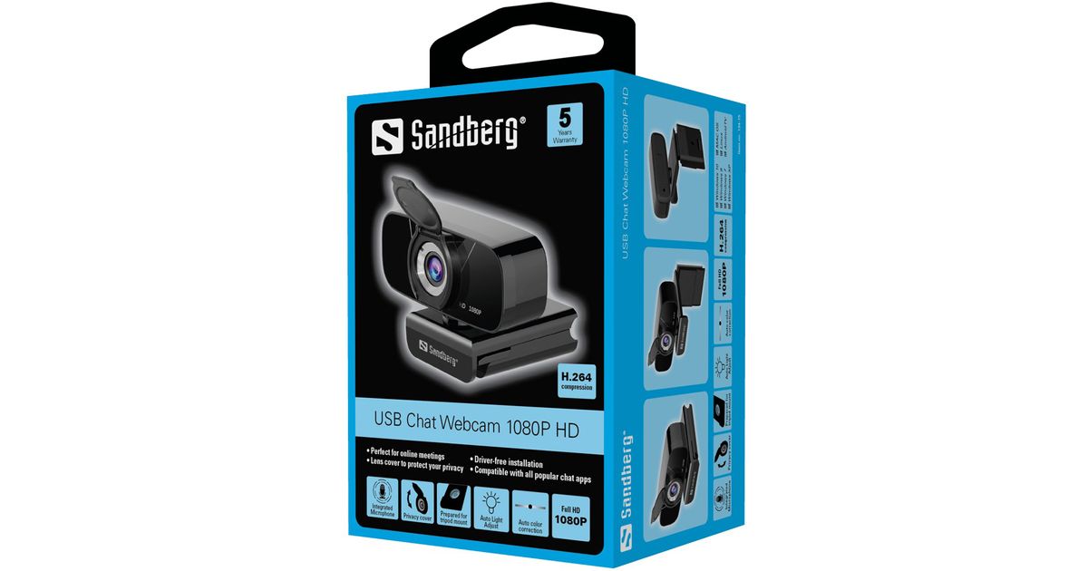 Sandberg 134-15, 2 MP, 1920 x 1080 pikslit, 30 fps, 1080p, H.264, M-JPEG, YUV, 90°