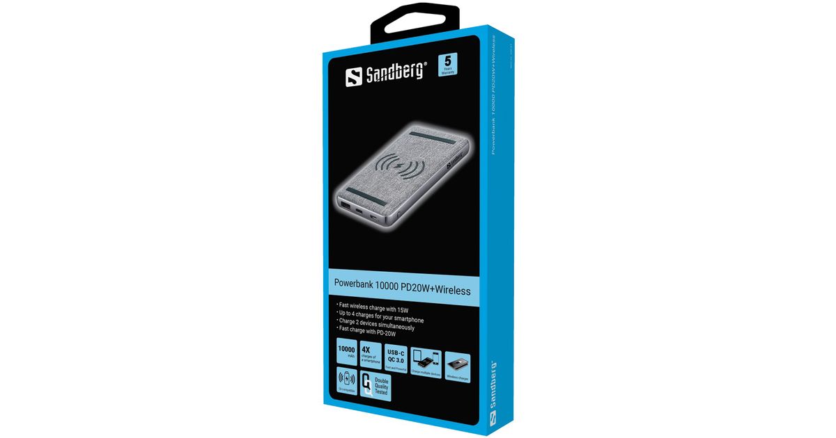 Sandberg 420-61, 10000 mAh, Liitiumpolümeer (LiPo), Quick Charge 3.0, Traadita laadimine, Must, Hall