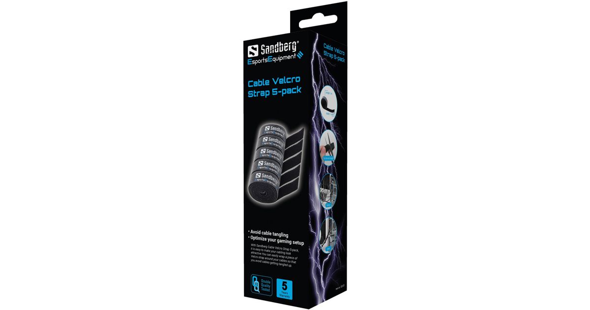 Sandberg Cable Velcro Strap 5-pack, Kaablihoidik/siduja, Must, 1000 mm, 50 mm, 50 mm, 200 mm