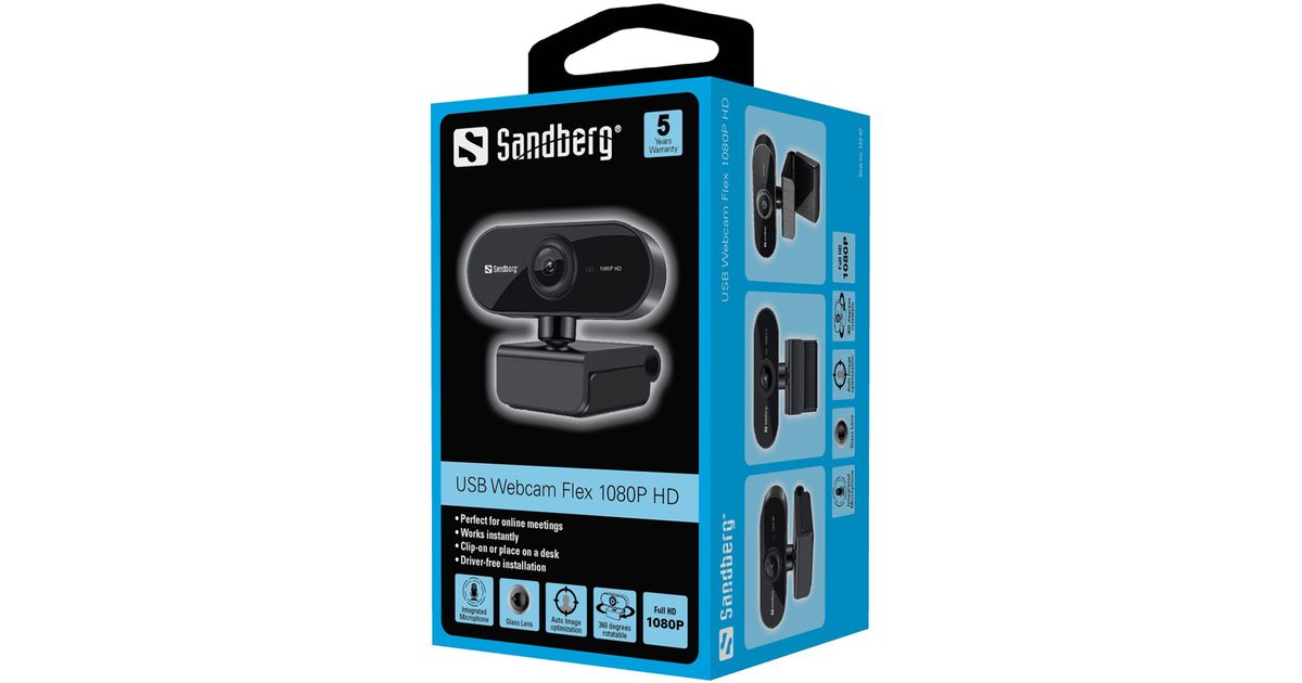 Sandberg Flex 1080P HD, 2 MP, 1920 x 1080 pikslit, 30 fps, USB, Must, Klamber/statiiv