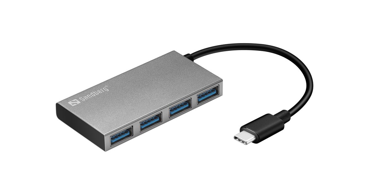 Sandberg USB-C to 4 xUSB 3.0 Pocket Hub, USB 3.2 Gen 1 (3.1 Gen 1) Type-C, USB 3.2 Gen 1 (3.1 Gen 1) Type-A, Valge, Alumiinium, RoHS, Windows 10, Windows 7, Windows 8