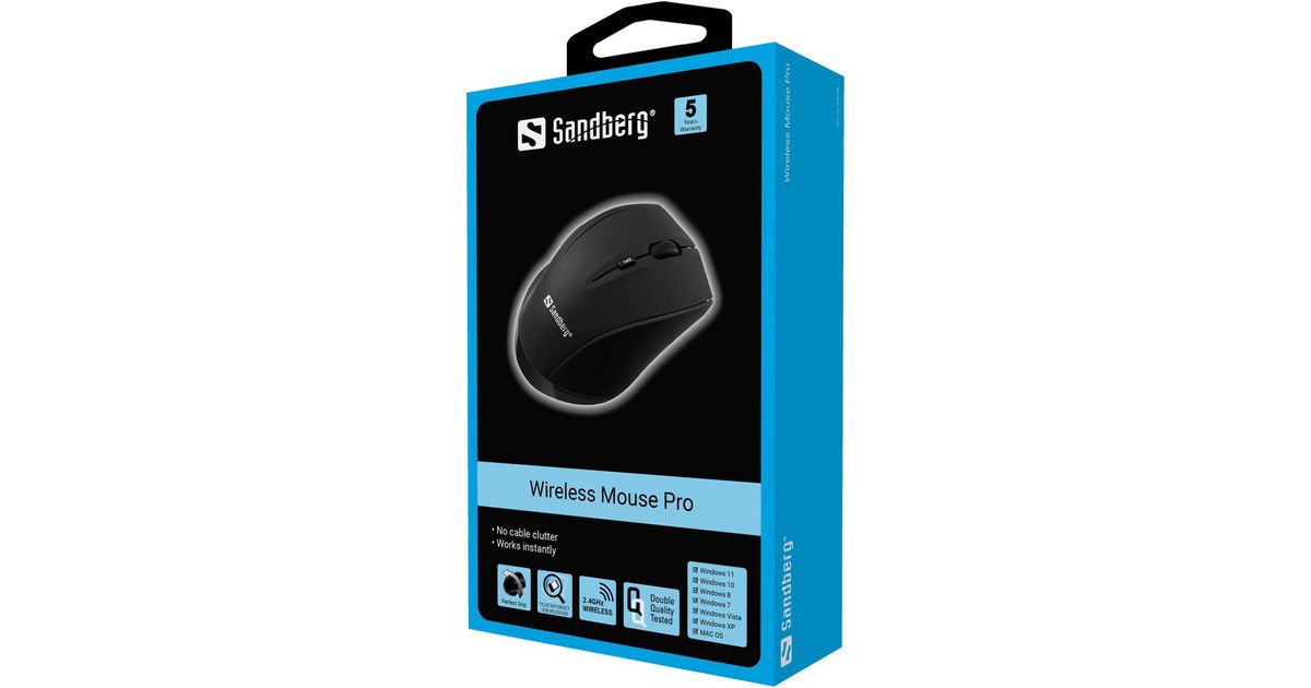 Sandberg Wireless Mouse Pro, Parempoolne, Optiline, Raadioside, 1600 DPI, Must