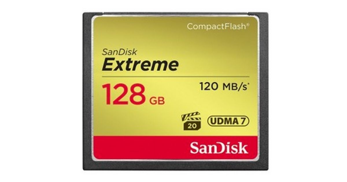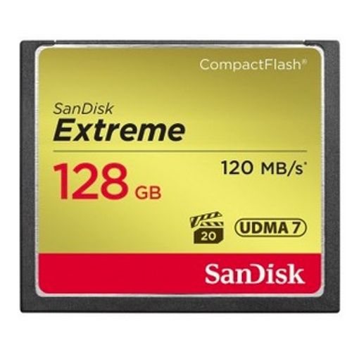 SanDisk CF Extreme 128GB, 128 GB, CompactFlash, 120 MB/s, 85 MB/s, Must