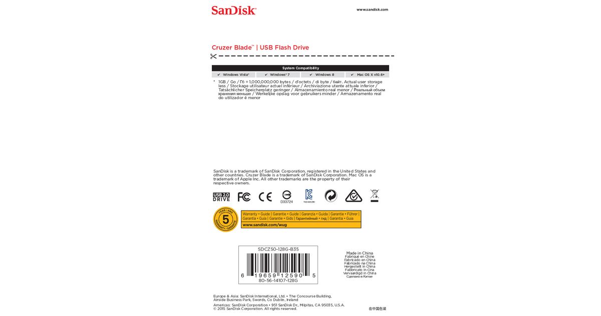SanDisk Cruzer Blade USB-välkmälu 128 GB USB tüüp A 2.0 Must, Punane