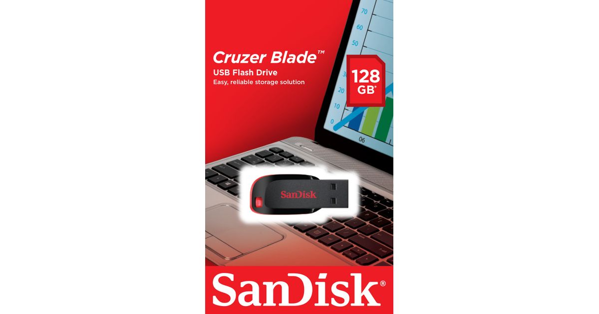 SanDisk Cruzer Blade, 128 GB, USB tüüp A, 2.0, Korgita, 2,5 g, Must, Punane