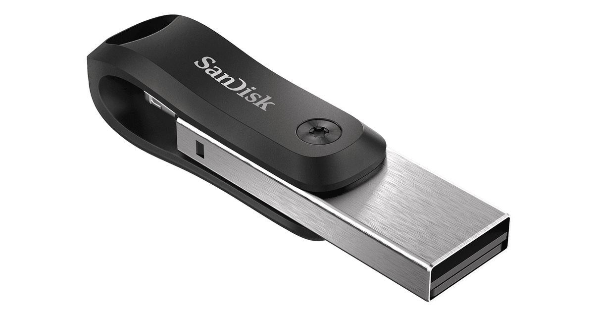 SanDisk iXpand, 64 GB, USB Type-A / Lightning, 3.2 Gen 2 (3.1 Gen 2), Pöörleva liigendiga, Must, Hõbe