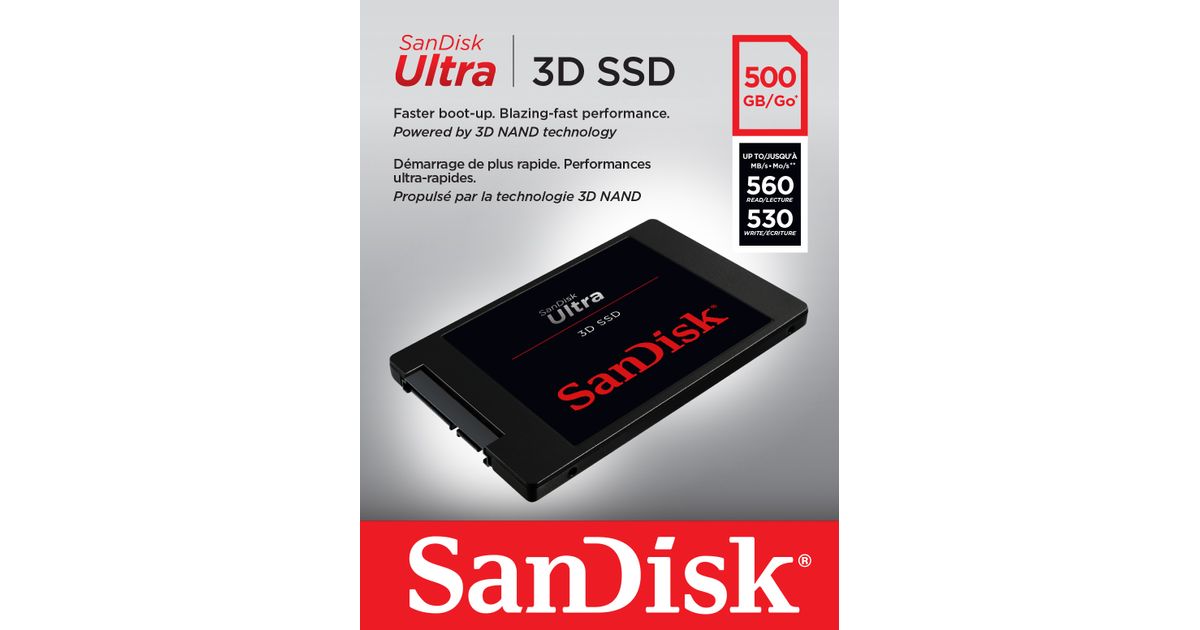 SanDisk Ultra 3D, 500 GB, 2.5", 560 MB/s, 6 Gbit/s
