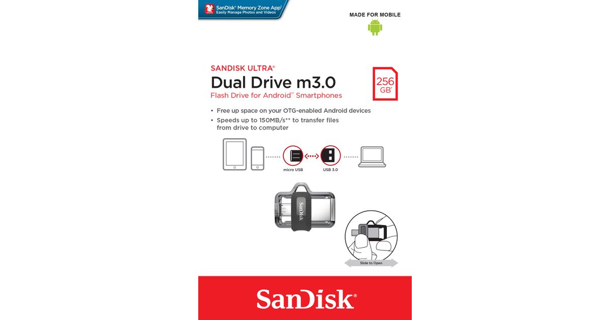 SanDisk Ultra Dual m3.0, 256 GB, USB Type-A / Micro-USB, 3.2 Gen 1 (3.1 Gen 1), Liugur, 5,2 g, Must, Hõbe, Läbipaistev
