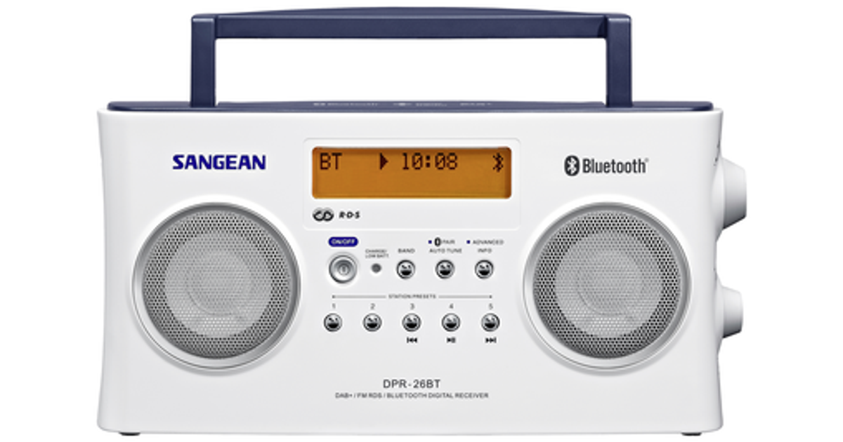 Sangean Dpr-26 Bt Portable Radio Dab+, Fm Aux, Bluetooth Battery Charger White