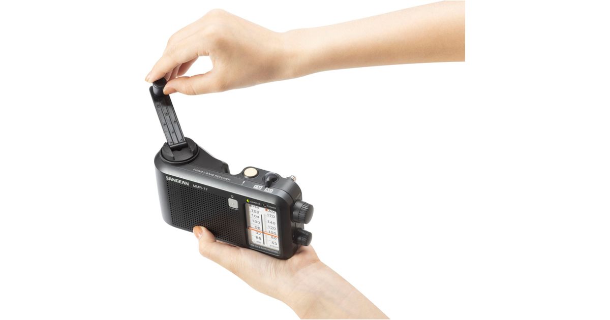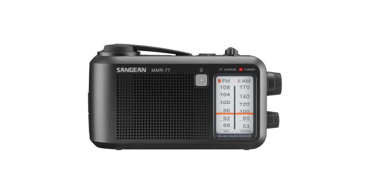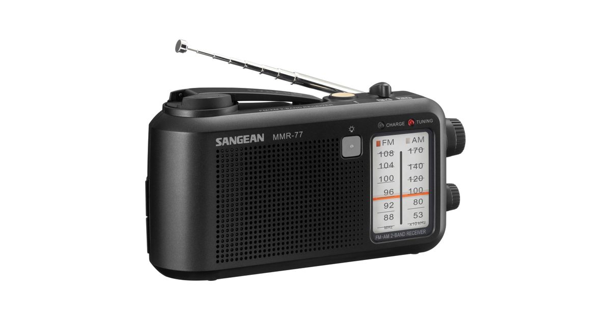 Sangean MMR-77 Outdoorradio MW, UKW MW, UKW Handkurbel, spritzwassergeschützt, Taschenlampe, wiederaufladbar Schwarz (A500514)
