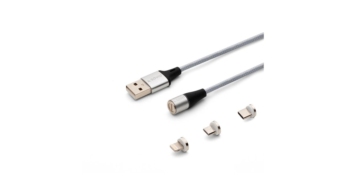 Savio CL-156, 2 m, USB A, USB C/Micro-USB B/Lightning, USB 2.0, 480 Mbit/s, Hõbe