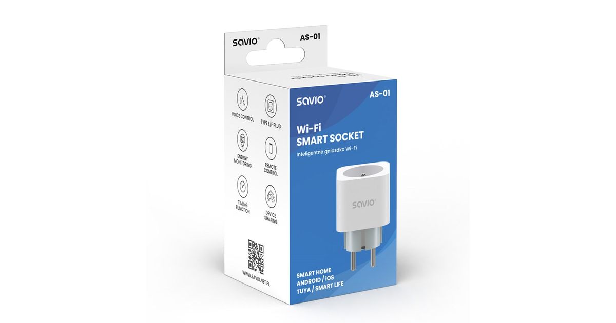 SAVIO WI-FI smart socket, 16A, AS-01, White - MT Shop