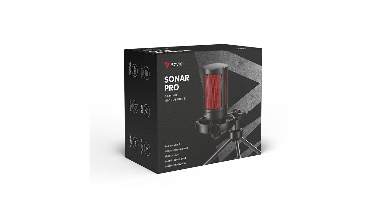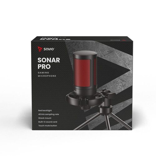 SAVIO wired gaming microphone with backlight, tripod, USB, SONAR PRO