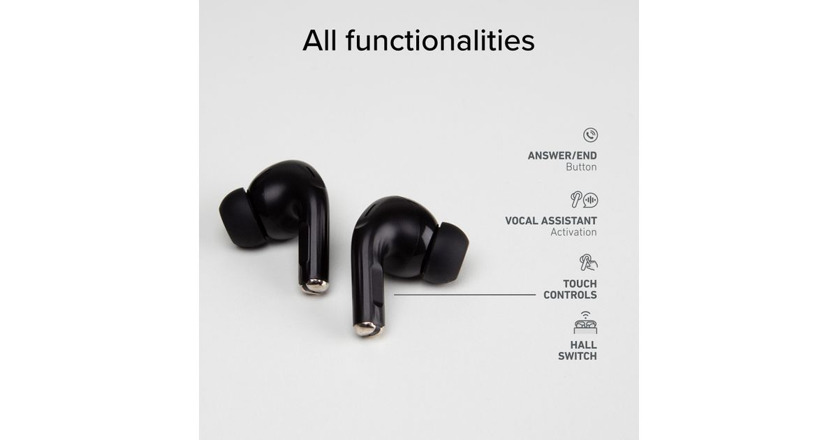 - Hall Switch Technology – kõrvaklapid ühenduvad seadmega kohe karbi avamisel