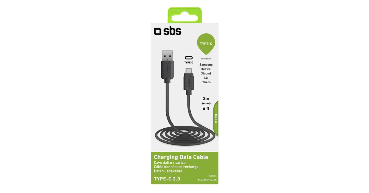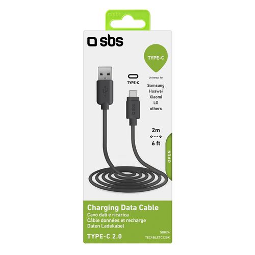 SBS TECABLETC220K USB-kaabel 2 m USB 2.0 USB A USB C Must