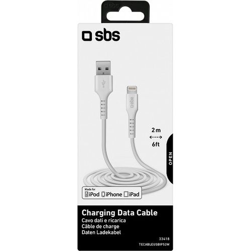 SBS TECABLEUSBIP5289W, 2 m, Lightning, USB A, Meessoost, Meessoost, Valge