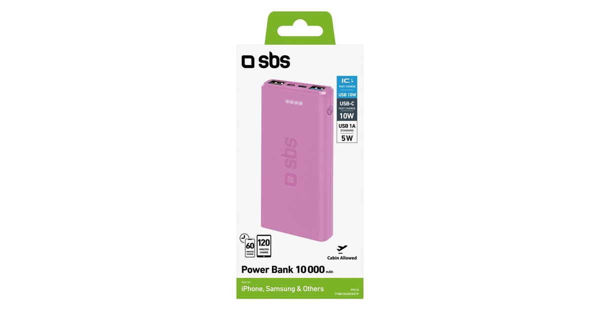 SBS TTBB10000FASTP, 10000 mAh, Liitiumpolümeer (LiPo), Roosa