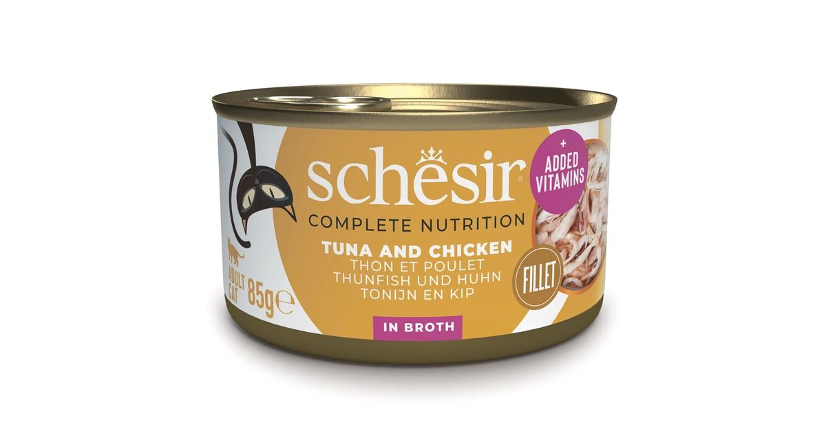 SCHESIR dla kotów Adult w Naturalnym Soku Tuńczyk z Kurczakiem i Ryżem 85g