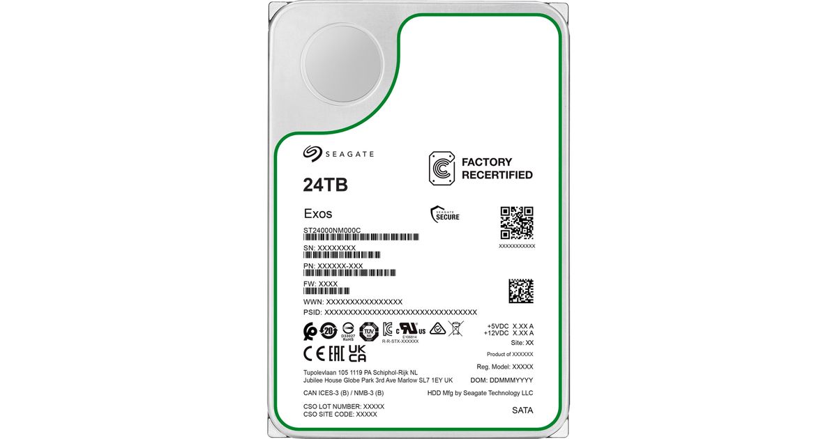 Seagate Recertified Exos St24000Nm000C 24Tb 7.2K Rpm Sata 6Gb/S 512E 3.5 Enterprise Hard Drive