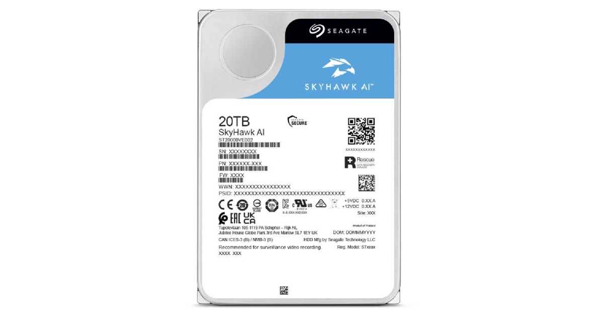 Seagate SkyHawk AI internal hard drive 20 TB 7200 RPM 512 MB 3.5" Serial ATA III