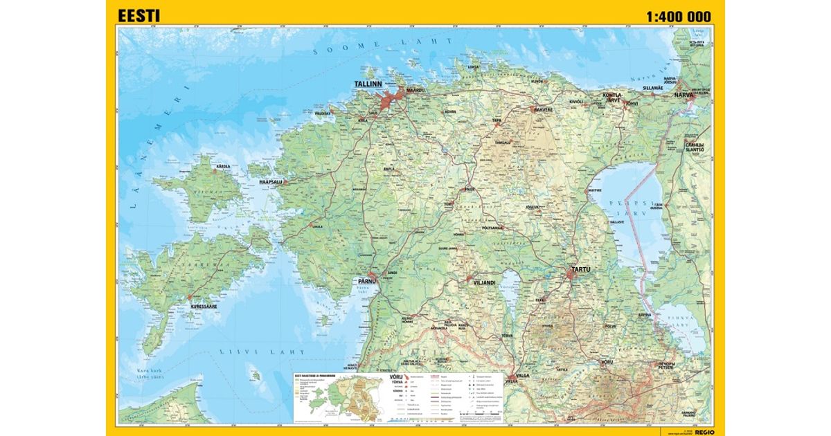 Seinakaart lamineeritud -Eesti üldgeograafiline 1:400 000, 990x700mm