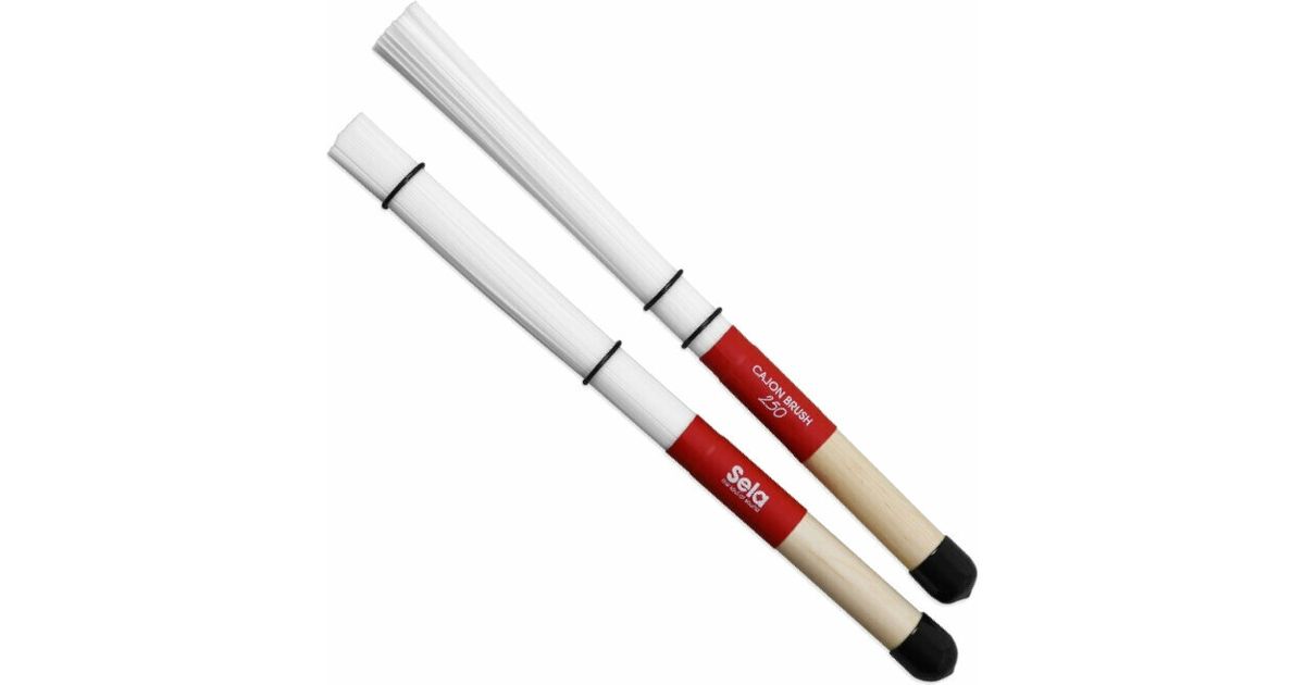 Sela Cajon brushes are essential for all cajon players who want to get the full sound potential out of their instruments. Developed in close cooperation with our Sela artists, the brushes have an excellent practical suitability and are very versatile. The slightly higher weight of the Sela Cajon Brushes offers more punch and a more distinctive bass than comparable models from other manufacturers. In short, Sela Cajon Brushes are true bass wonders. The two adjustable rubber rings offer extremely nuanced adjustment possibilities, from an accentuated and bass-driven playing style to classic brush techniques, everything is possible. The nylon rods are soft at the bottom and harder in the direction of the handle. Depending on the angle of the impact there are endless sound variations. The slightly higher weight of Sela Cajon Brushes offers more punch and more distinctive bass. The "bottom cap" on the handle can be used for additional playing techniques.
