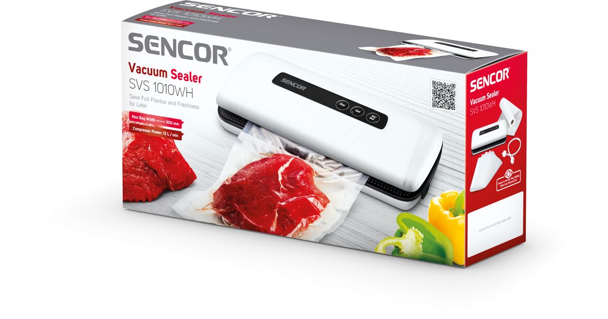 Sencor SVS 1010WH, Valge, 0,8 mbar, Ainult tihend, Nööbid, 12 l/min, 110 W