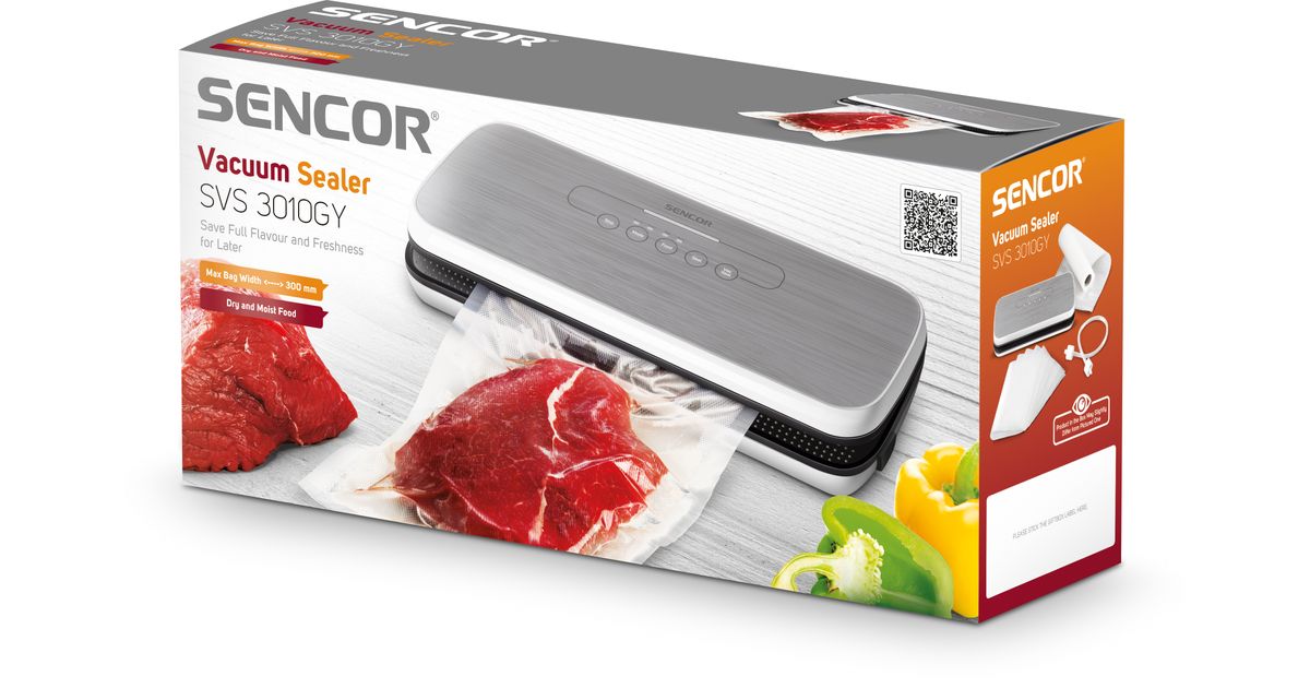 Sencor SVS 3010GY, Hõbe, 0,8 mbar, Ainult tihend, Roostevaba teras, Nööbid, 12 l/min