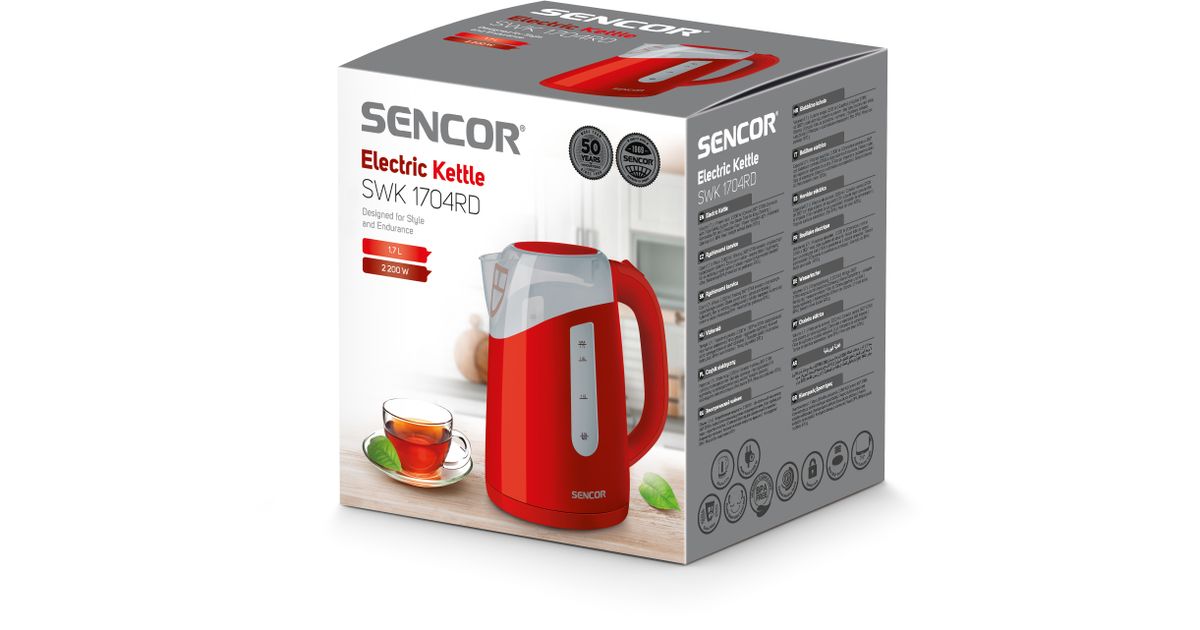 Sencor SWK 1704RD, 1,7 l, 2200 W, Punane, Plast, Veetaseme indikaator, Juhtmevaba