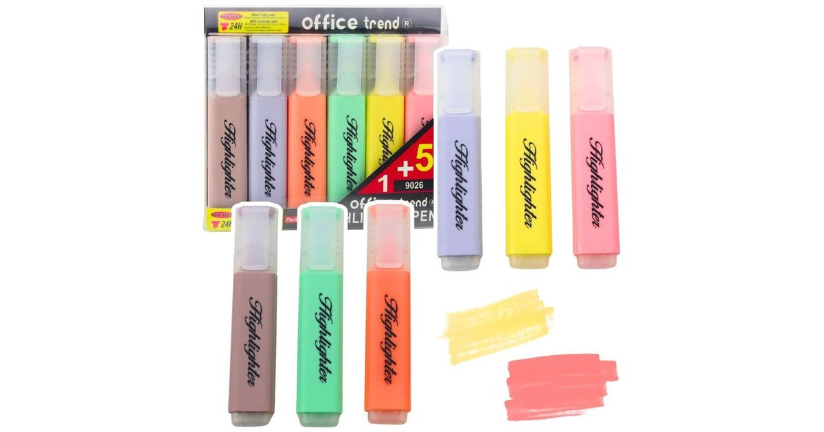Set of Highlighters Note Markers Pastel Colors 6pcs
