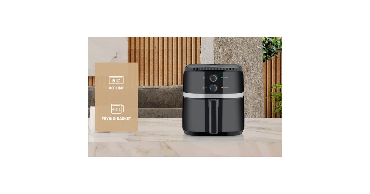 The hot air fryer offers enough space with its 5 L cooking chamber.