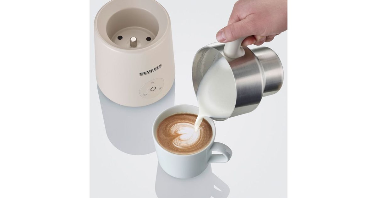 The milk frother makes creamy milk foam for your drinks. With induction and a dishwasher-safe stainless steel container, it is easy to use and clean.