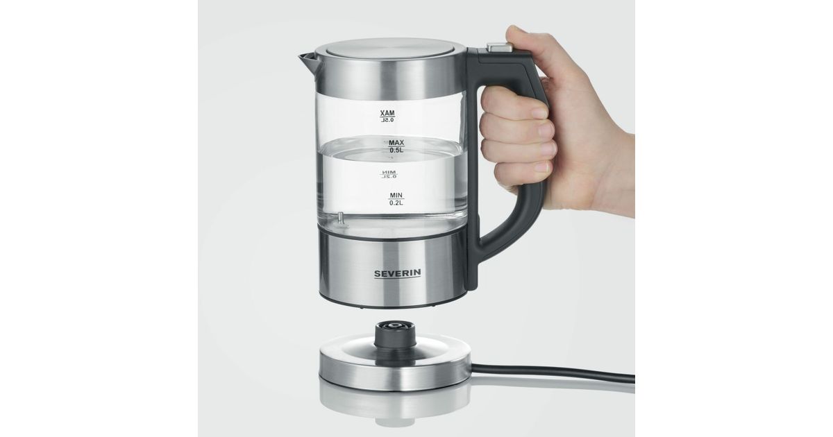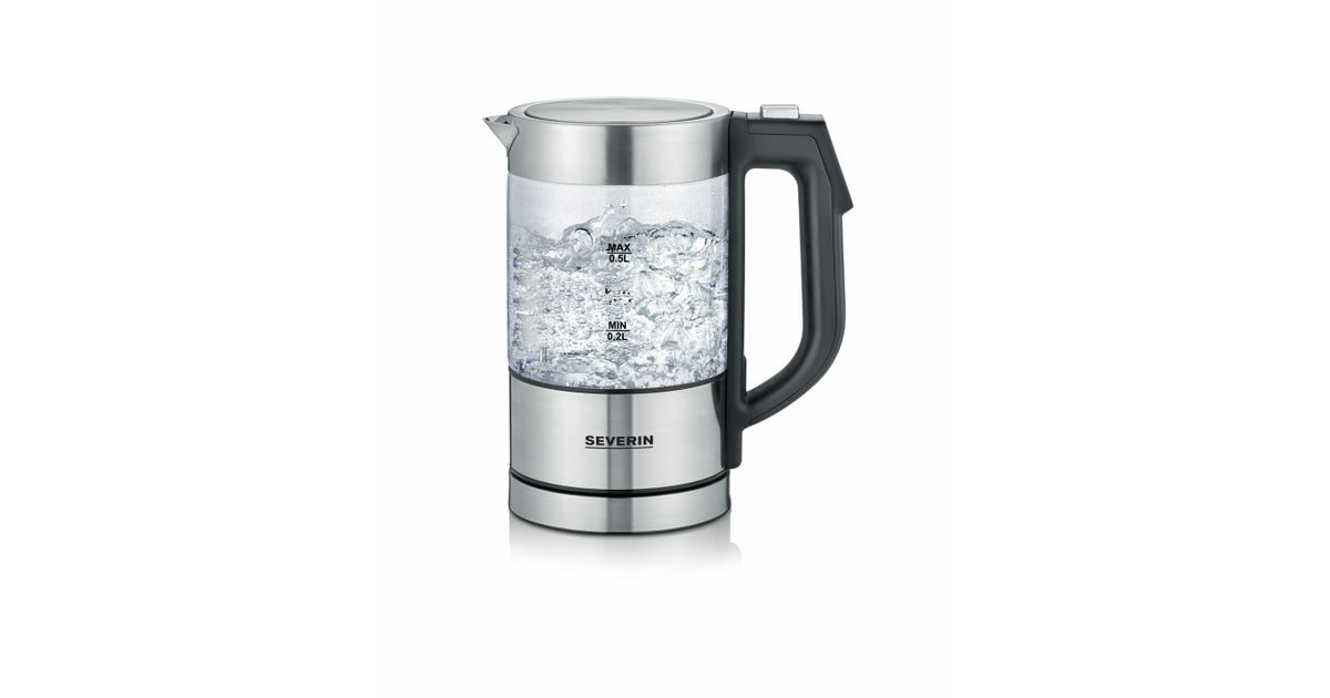 Severin WK 3458, 0,5 l, 1100 W, Must, Läbipaistev, Klaas, Roostevaba teras, Reguleeritav termostaat, Veetaseme indikaator
