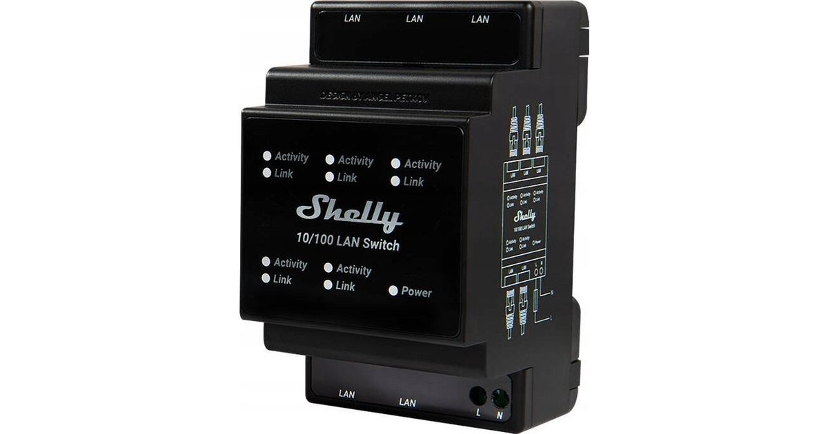 Shelly · Hutschiene·""LAN Switch""· 5 Ports· 10/100 Mbit - Switch - 0,1 Gbps (SHELLY_SWITCH) - Tark kodu - Kodu - MT Shop
