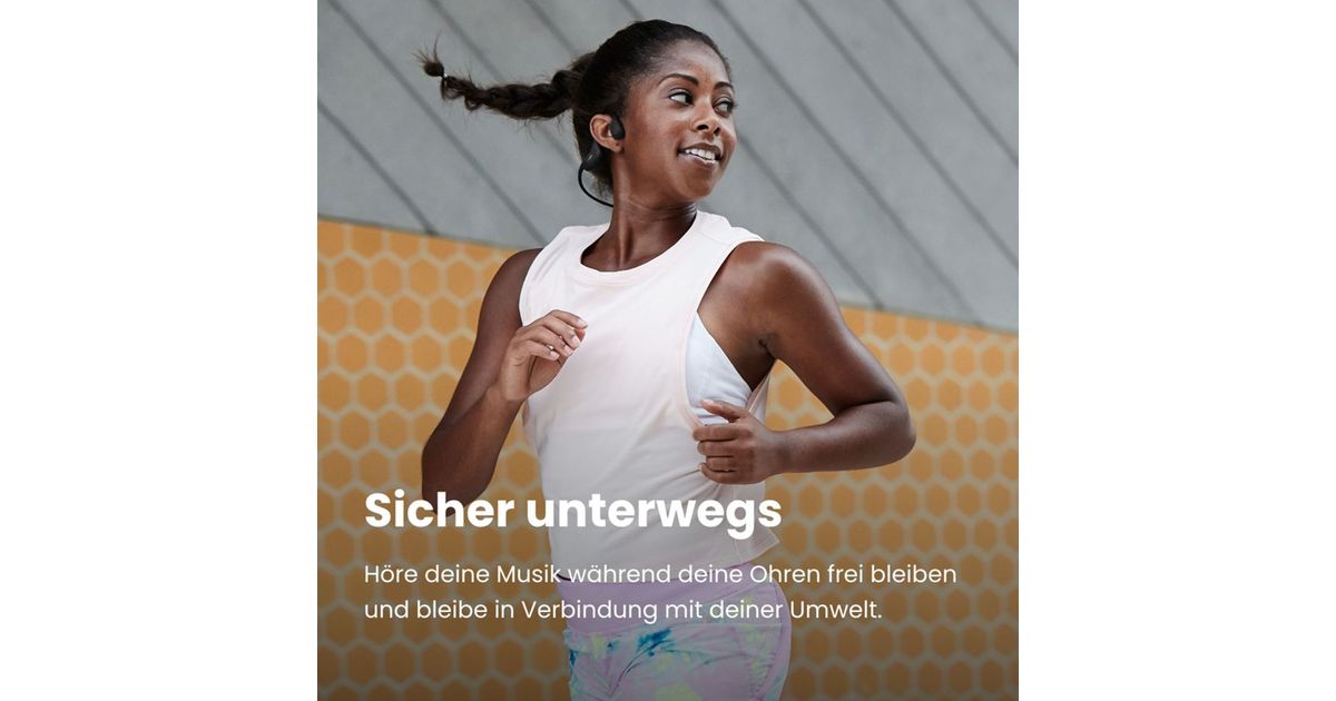 - Bone-sound technology: listen to music while staying aware of your surroundings