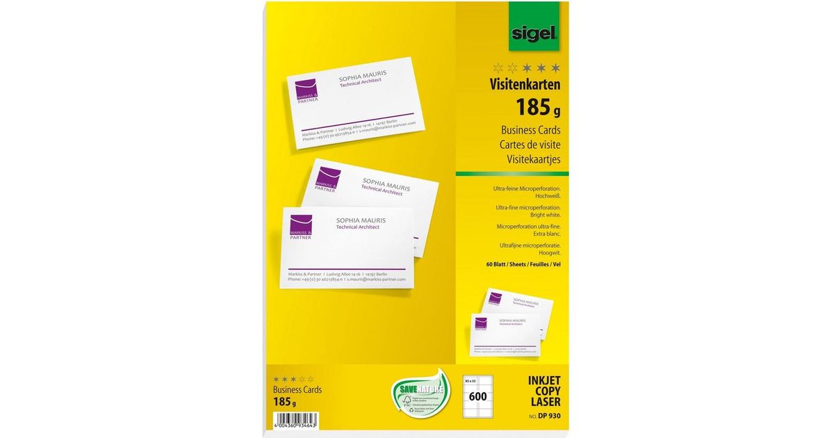 Sigel DP930 visiitkaart Laser/tint Valge