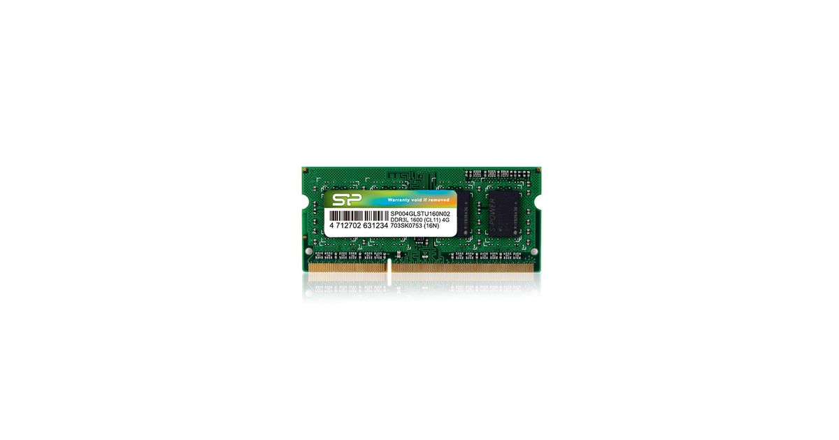 Silicon Power SP004GLSTU160N02, 4 GB, 1 x 4 GB, DDR3L, 1600 MHz, 204-pin SO-DIMM, Roheline