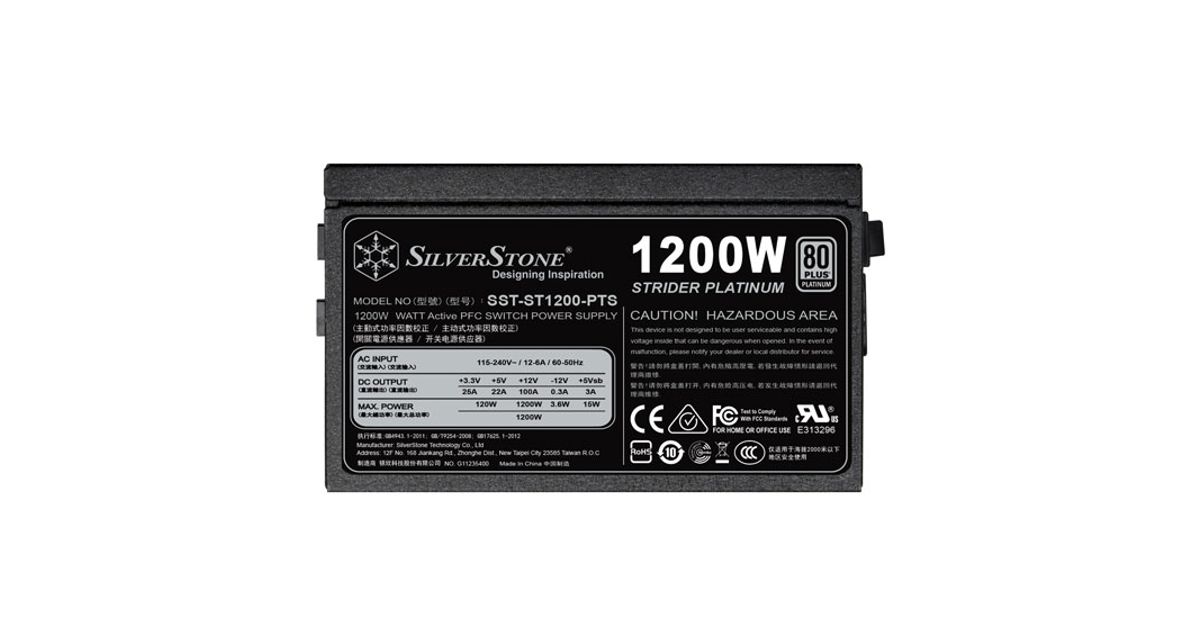 Silverstone ST1200-PTS, 1200 W, 100 - 264 V, 47 - 63 Hz, Aktiivne, 120 W, 1200 W
