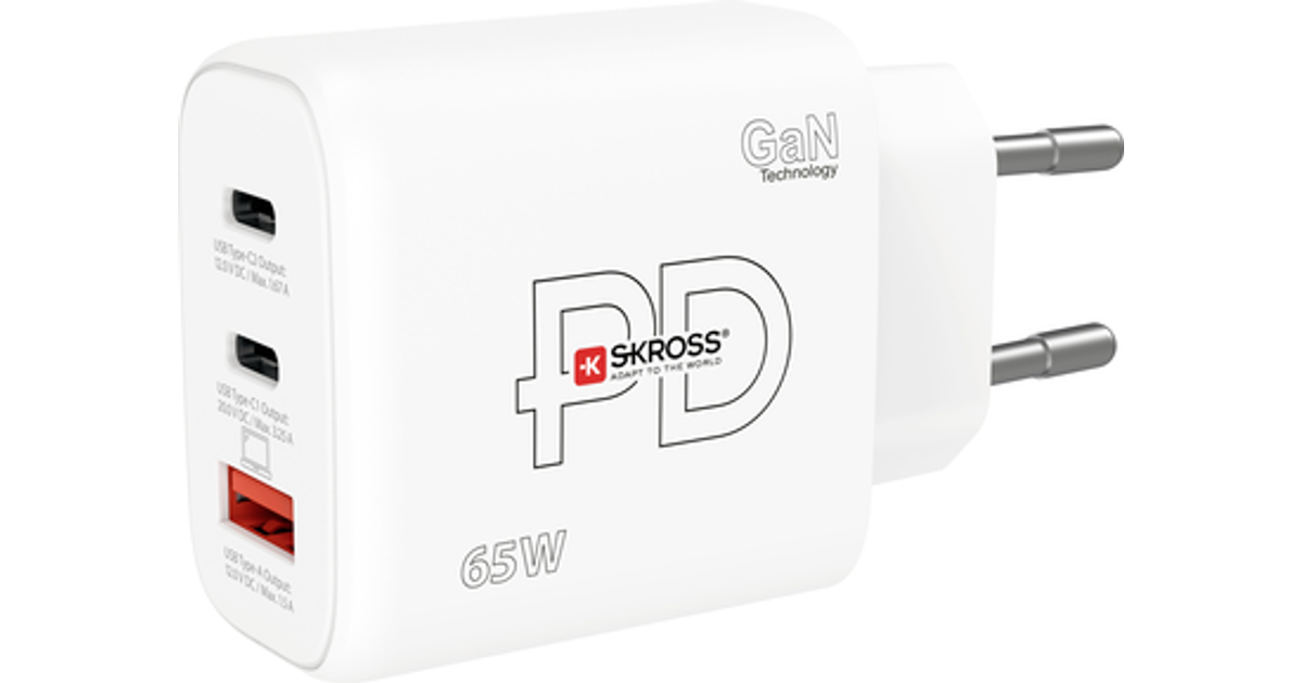 Skross Power Charger 65W Pd Gan Eu Usb Charger Indoors Max. Output Current 3.25 A Usb 2.0 Port A, Usb-C® No. Of Outputs: 3 X