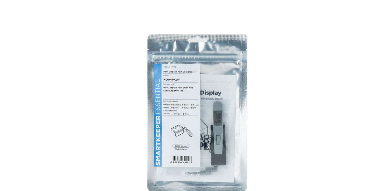 Smartkeeper MD04PKGY Schnittstellenblockierung Schnittstellenblockierung + Schlüssel Mini DisplayPort Grau Kunststoff 1 Stück(e) (MD04PKGY)