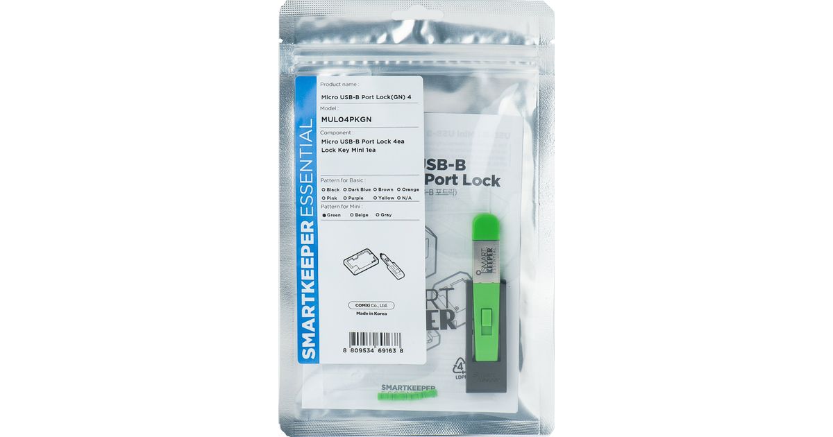 Smartkeeper MUL04PKGN Schnittstellenblockierung Schnittstellenblockierung + Schlüssel Micro USB Type-B Grün Kunststoff 1 Stück(e) (MUL04PKGN)