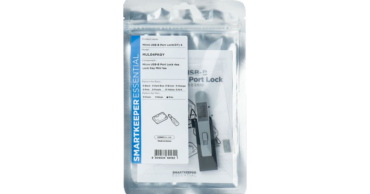 Smartkeeper MUL04PKGY Schnittstellenblockierung Schnittstellenblockierung + Schlüssel Micro USB Type-B Grau Kunststoff 1 Stück(e) (MUL04PKGY)