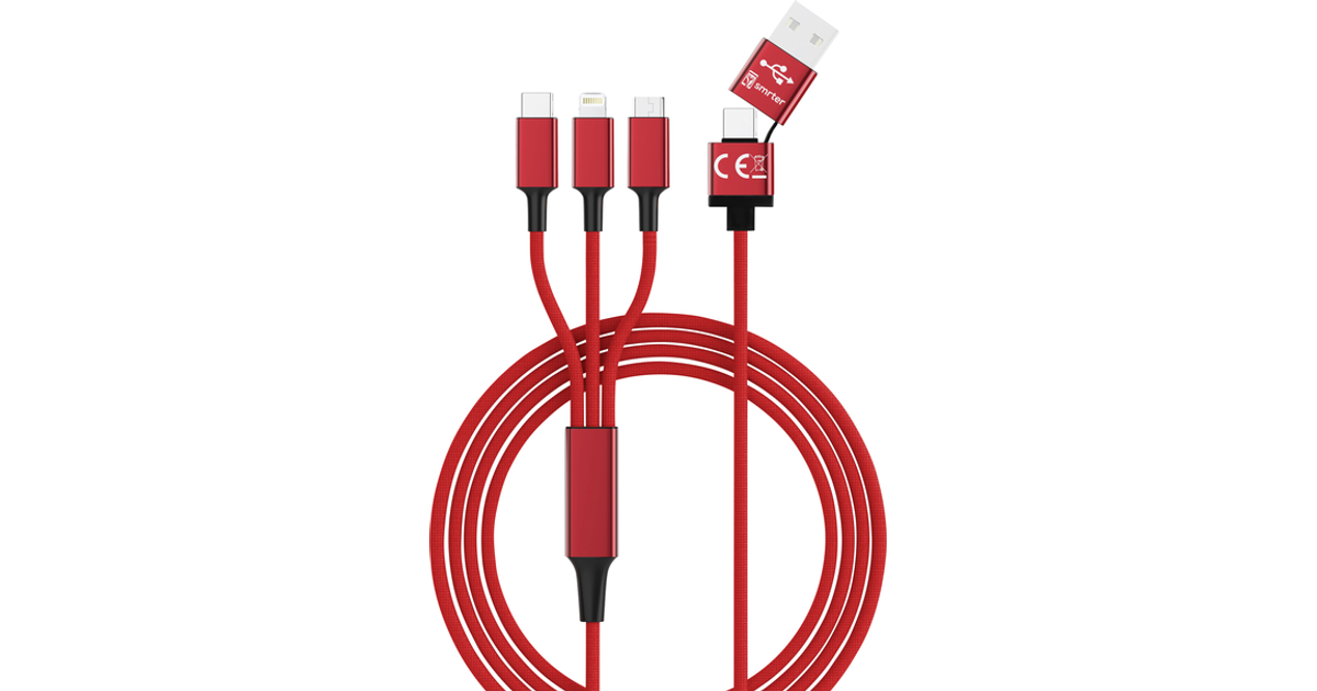 Smrter Usb Charging Cable Usb 2.0 Usb-A Plug, Usb-C® Plug, Apple Lightning Plug, Usb Micro-B Plug 1.20 M Red Smrter_Hydra_Ult_Rd