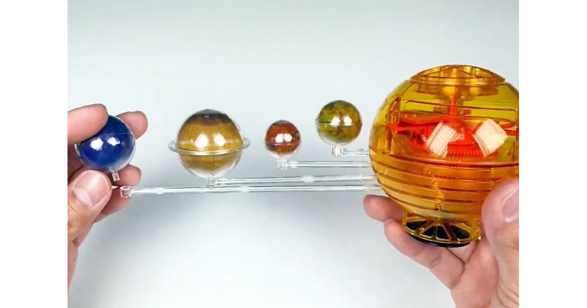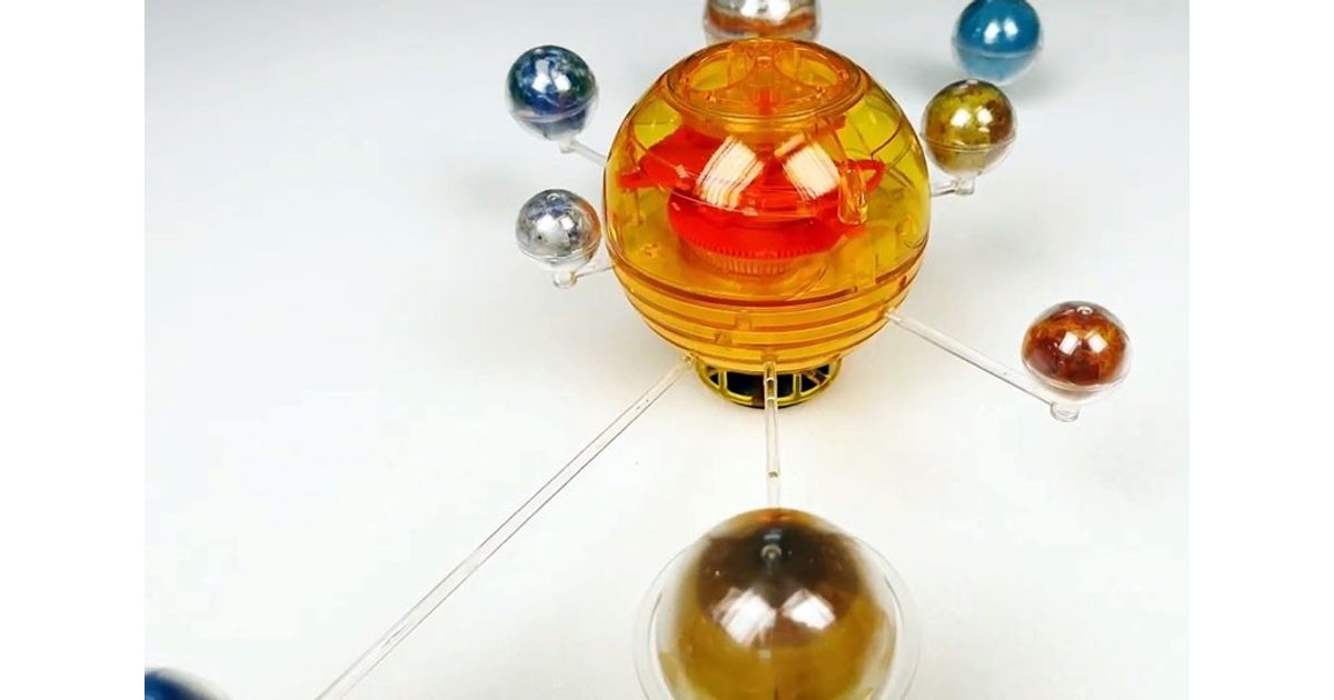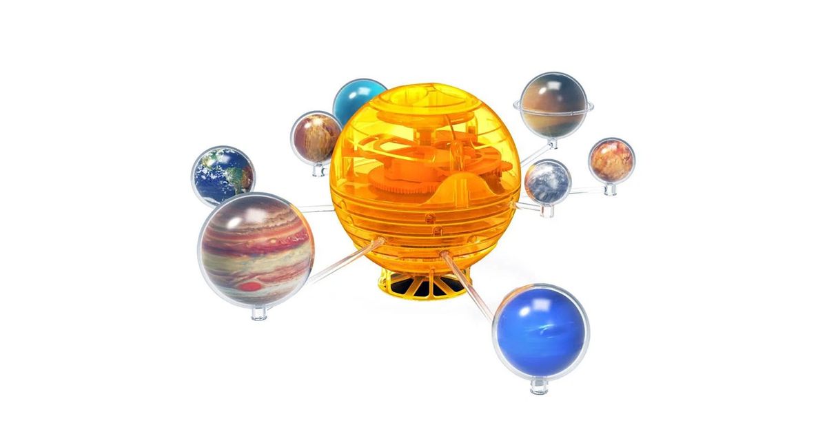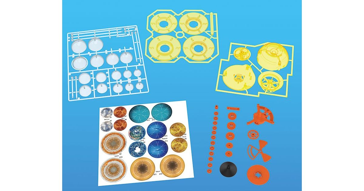Completely devoid of electronics, the planet models revolve around the sun, while looking confusingly similar to the planets of our solar system - no wonder, they are designed with stickers, and Saturn even has its own ring!