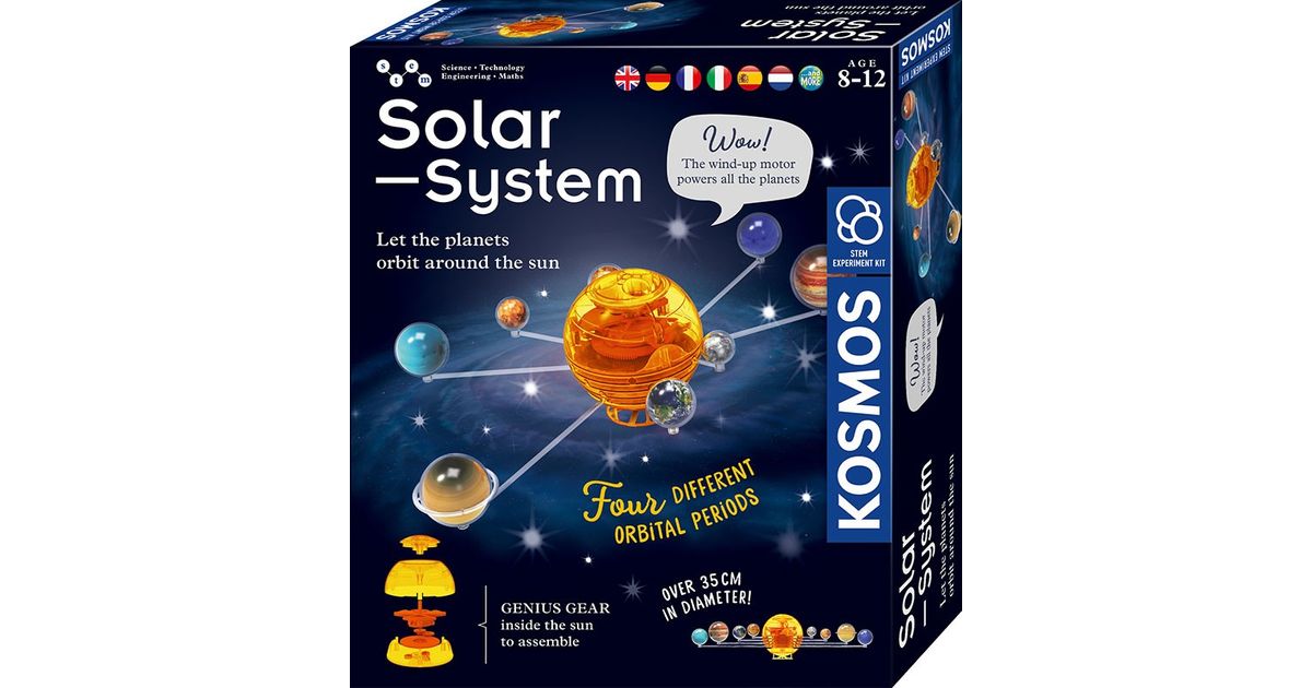 The solar system model by KOSMOS consists of 8 planets and the sun, which you will build with more than 50 parts. In different orbits, Jupiter, Venus, etc. orbit around a large yellow center, which is the sun.