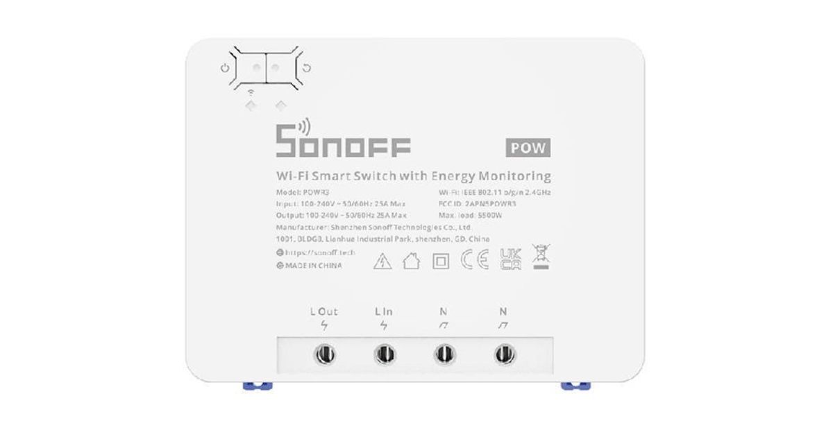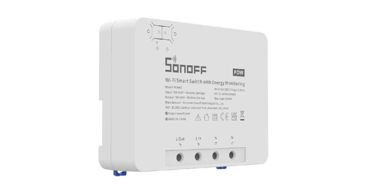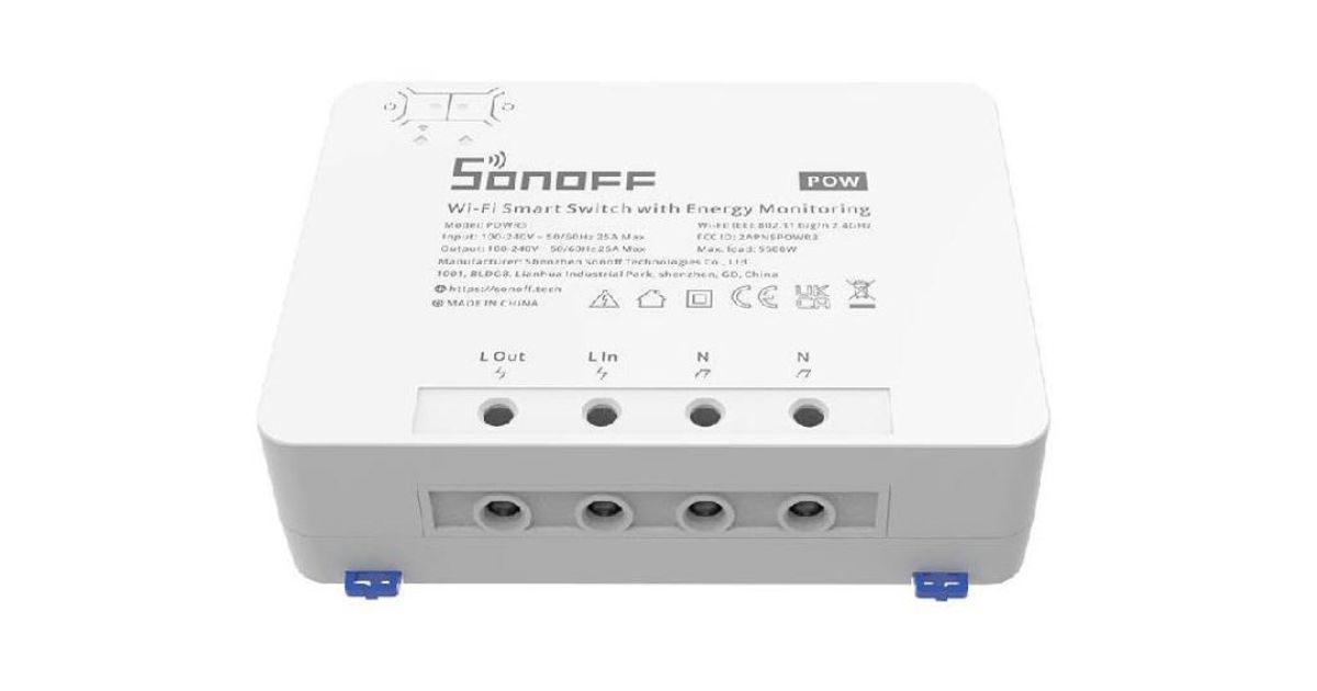 Sonoff POWR3, Nutilüliti, Valge, 100 - 240 V, 50 / 60 Hz, 25 A, 162 mm